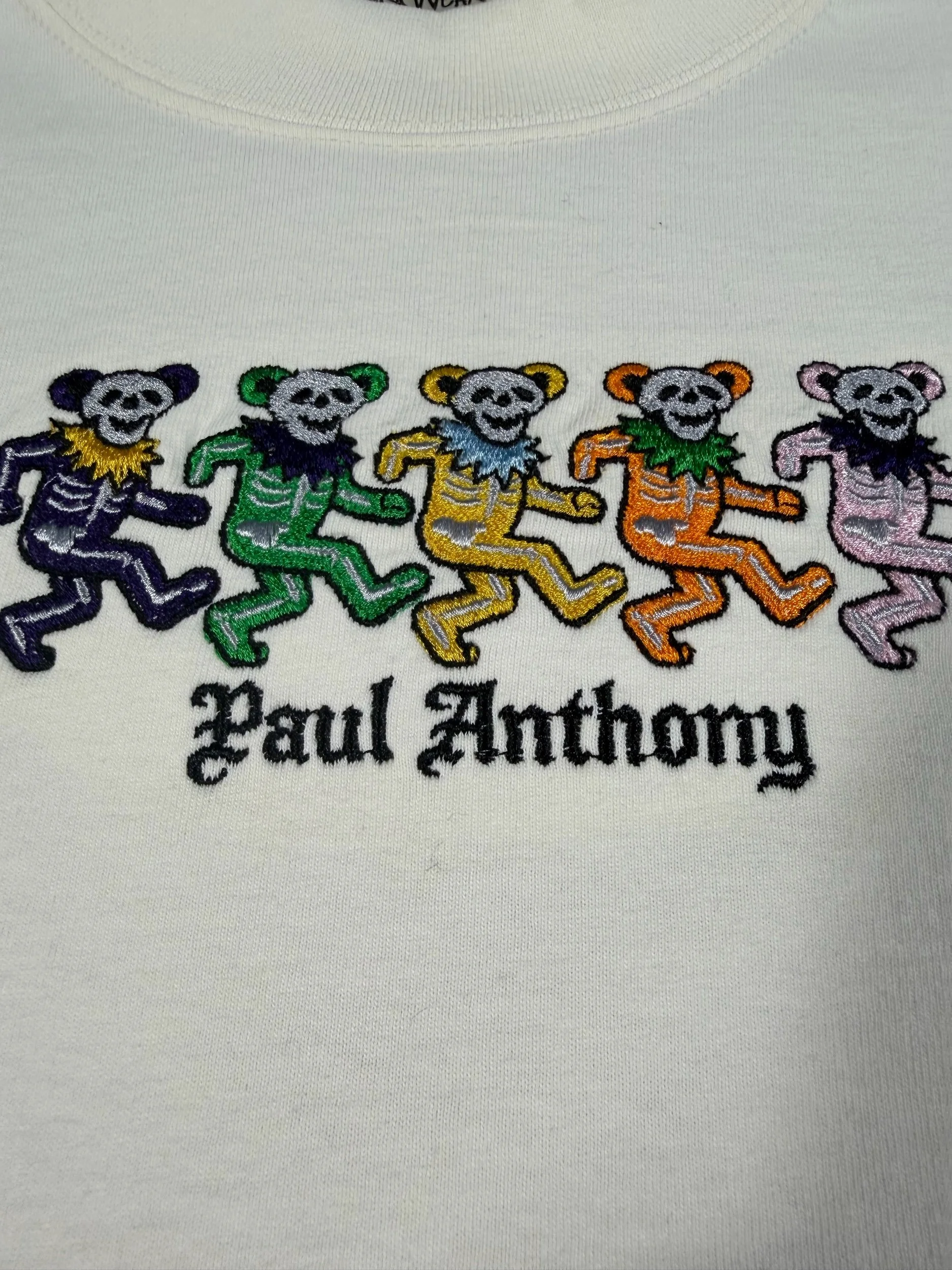 Every shirt takes time — approximately 70 minutes for the front embroidery and 20+ minutes for the back, not including setup and finishing.